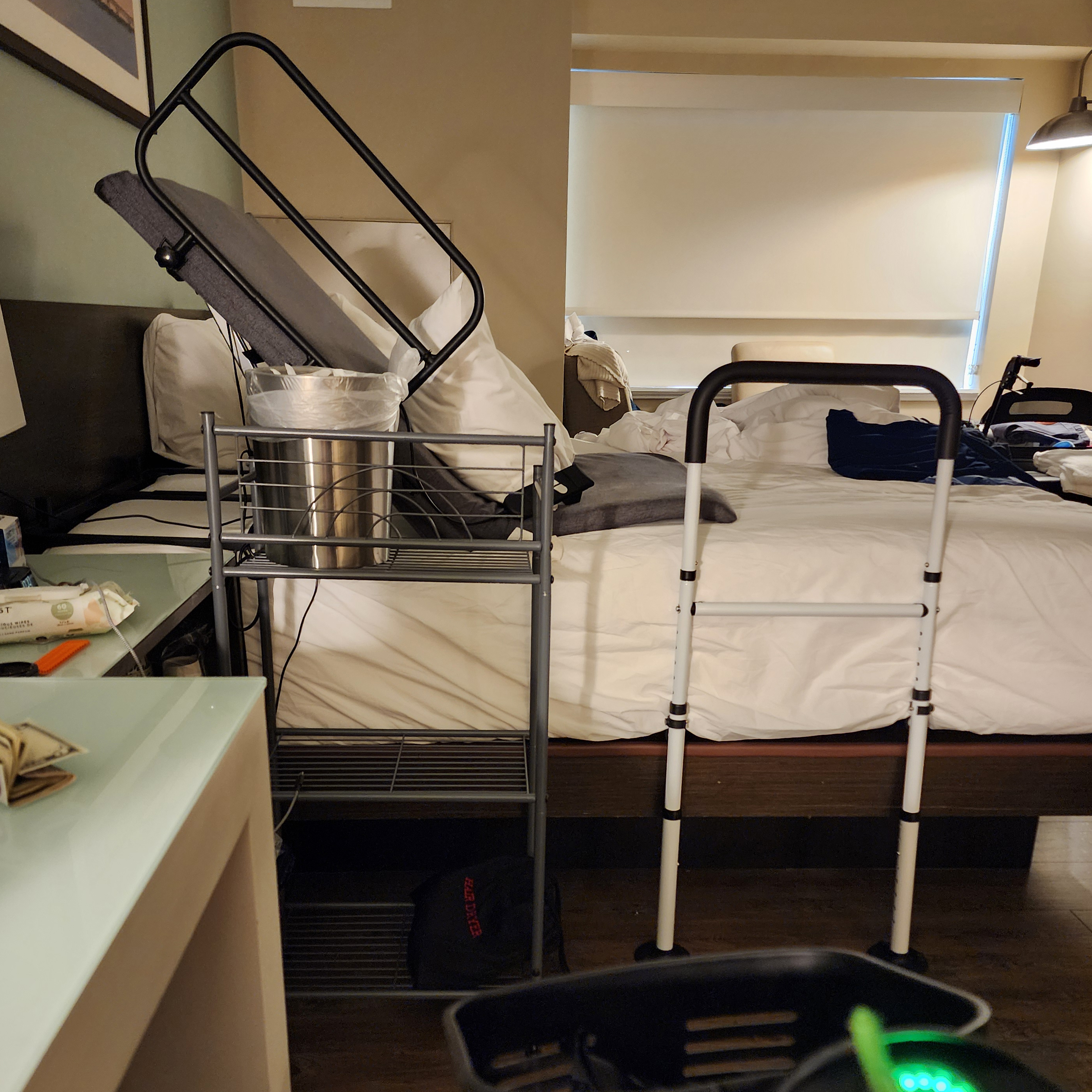 I cleaned up, got dressed, and we headed to the car; Neil came back to help. We got to the show, and people were stopping by to see me and Stuart. I took a shake around 3 and used a portable urinal, which worked well. By five, the show was over, and we headed back to the hotel. They invited me to join them for a brewery trip and dinner, but I declined. Amy took two bananas and mixed them for me, but they were so liquid that most of it spilled out of my mouth. Around 7, I took a shake through the feeding tube, almost coughed, as it seemed to move up to my throat, but took a small break. At 7:40, Amy came back with a burger for me. It was good. Finally had some ice cream and RSO. I had the same issue getting into bed, so the family helped me.